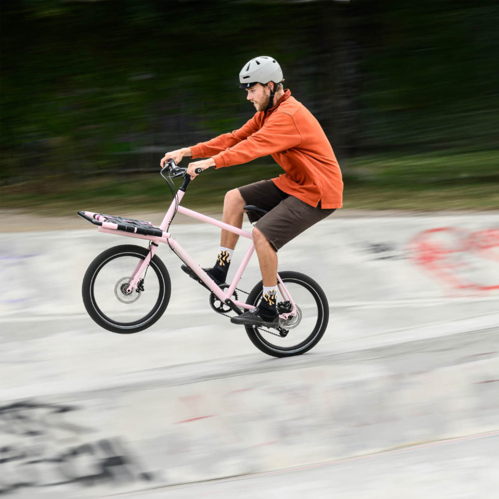 Das Nano ist mit zwei 20-Zoll-Rädern und 2,15-Zoll-Reifen sowie einem kürzeren Radstand als unsere anderen Modelle ausgestattet. Dadurch bietet es ein agileres Fahrgefühl und eine kompaktere Bauweise. Die kleineren Räder beschleunigen zudem schneller, was ideal für den Stadtverkehr mit seinen häufigen Anfahr- und Bremsmanövern ist. Durch das abfallende Oberrohr ist die Überstandshöhe reduziert, sodass mehr Fahrer das Rad genießen können. Obwohl es nur in einer Größe erhältlich ist, ermöglicht das flache Oberrohr eine optimale Anpassung an nahezu jede Körpergröße – von 160 cm bis 190 cm.